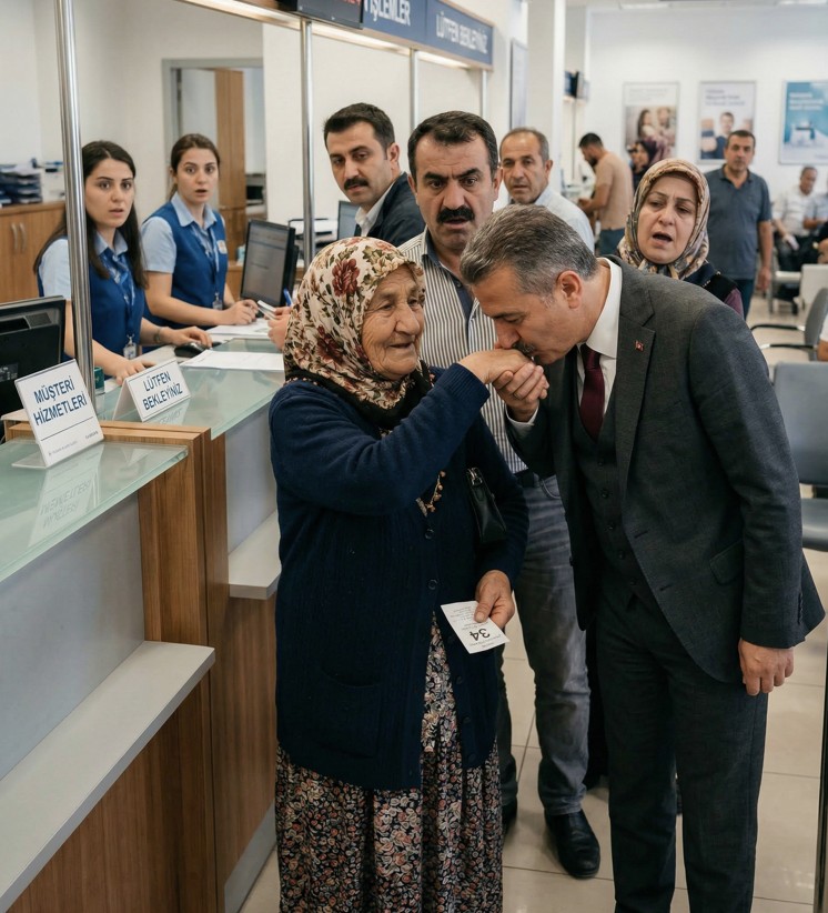 Banka bölge müdürü içeri girip o kadının önünde saygıyla eğilerek elini öptüğünde, koca şubeye ölüm sessizliği çöktü.