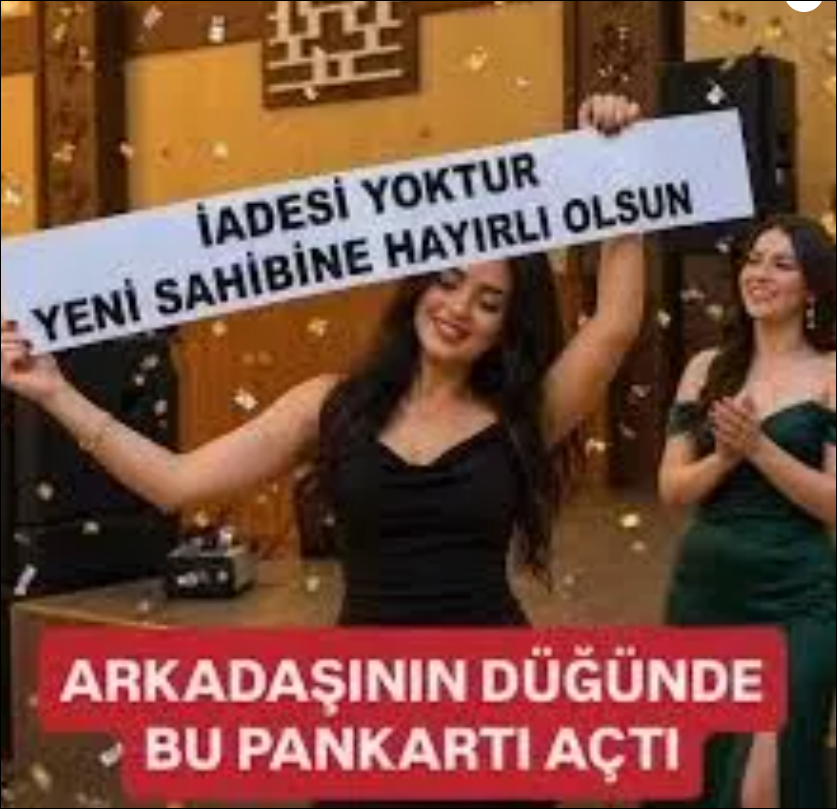 Bir kadının, evlenen erkek arkadaşının düğününe pankartla gitmesi dikkat çekti. Sosyal medyada paylaşılan görüntülerde, kadının düğüne “İadesi yoktur, yeni sahibine hayırlı olsun” yazılı pankartla katıldığı görüldü.