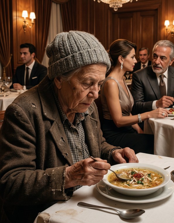 Bir gün çok şık bir restorana yaşlı, fakir bir kadın geldi. Üstünde eski bir palto, ayakkabıları da eskimişti.