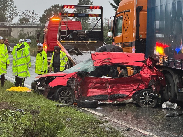 Edinilen bilgiye göre otomobil, Rize istikametinden Çayeli yönüne seyir halindeyken karşı yönden gelen Gürcistan plakalı tırın dorsesine çarparak altında kaldı.