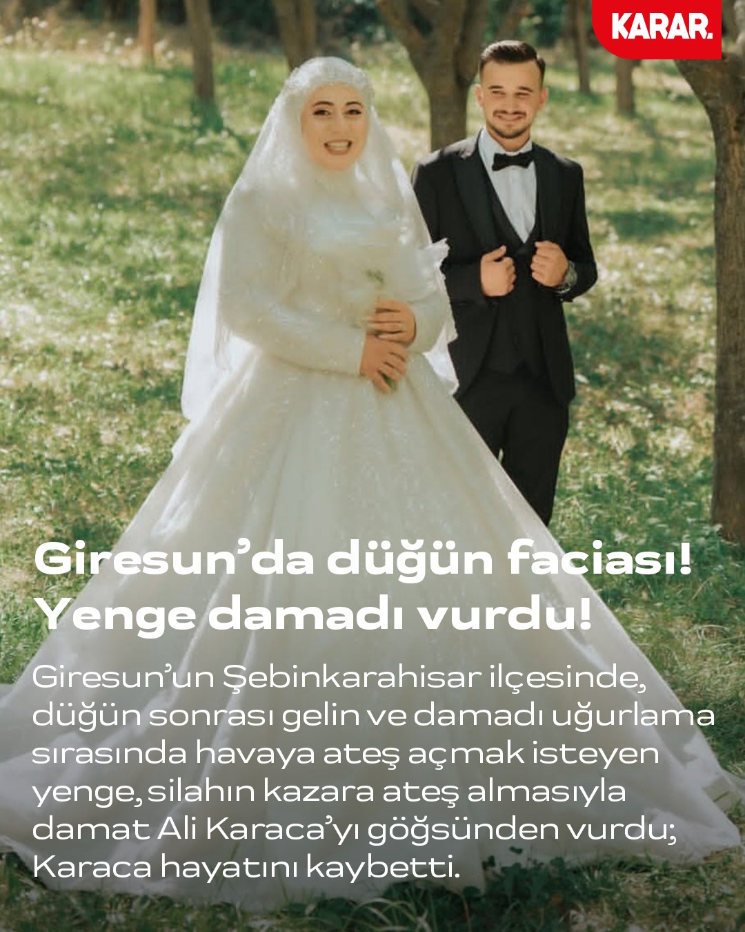 Giresun’un Şebinkarahisar ilçesinde düğünden sonra gelin ve damat evlerine uğurlanırken yenge damat Ali Karaca'yı göğsünden vurarak ölümüne neden oldu.